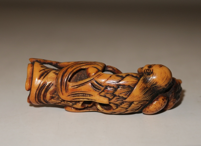 Stag antler Netsuke figure of a Daoist immortal(gama sennin)