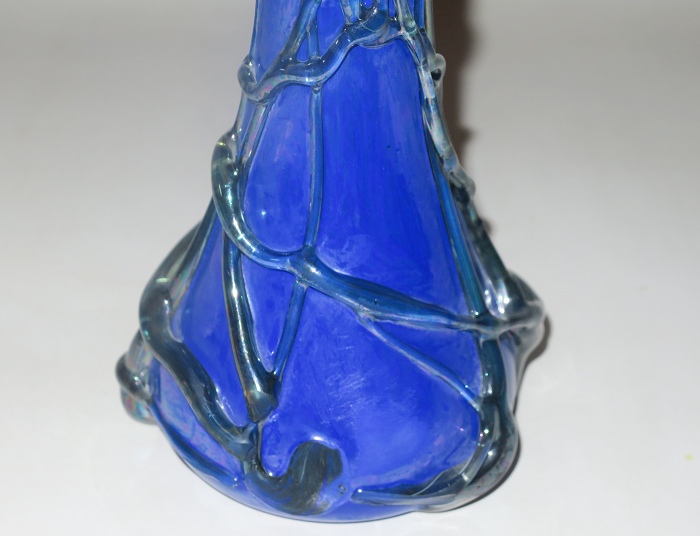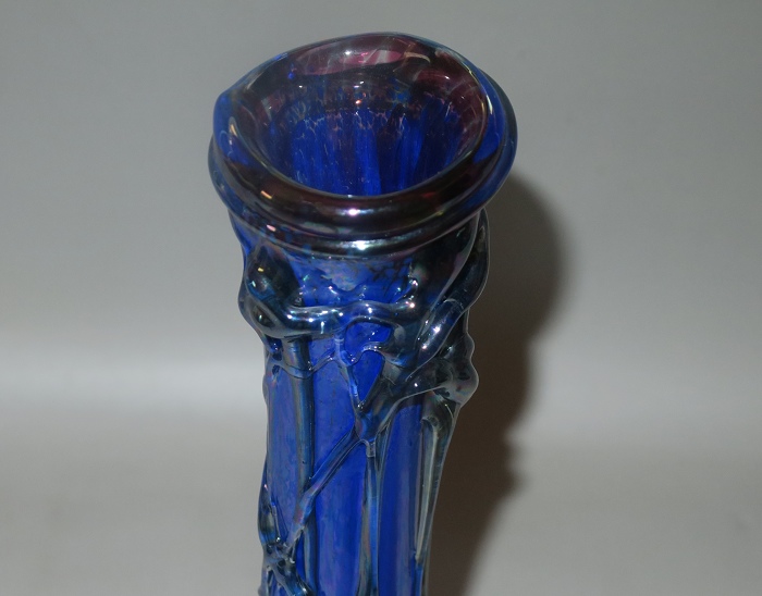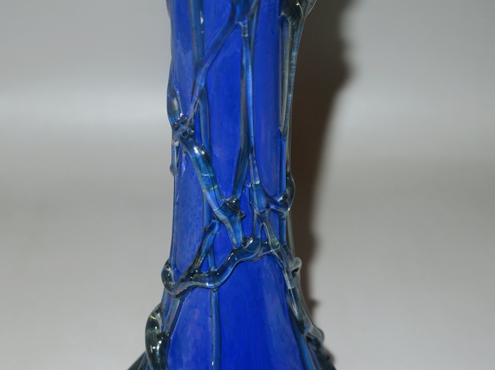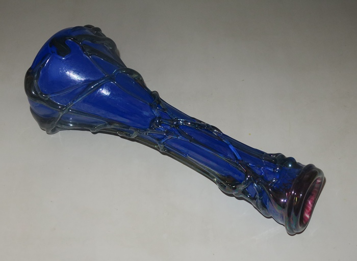 玻璃不规则地包裹在花瓶周围。无铅玻璃制成的花瓶由玻璃工匠直接在玻璃管上制作而成。每件作品都是独特且原创。独一无二的花瓶最适合室内装饰。手工吹染的钴蓝彩虹和黑彩虹的流光溢彩组合尤其值得称赞。