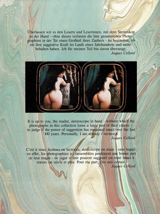 Though I have referred to a “relative lack of definition”, the reproduction of the photos is generally excellent. Though not possible, were the exact same photos to be reproduced in 2010 high definition digital standards then they just wouldn’t have the same appeal. This is an excellent “What the butler saw” collection, originating in France and with the ‘preface’ and ‘introduction’ written in French, English and German. the book which has really turned me on to stereoscopic pictures.the curves of the female body do lend themselves to a 3-D treatment!