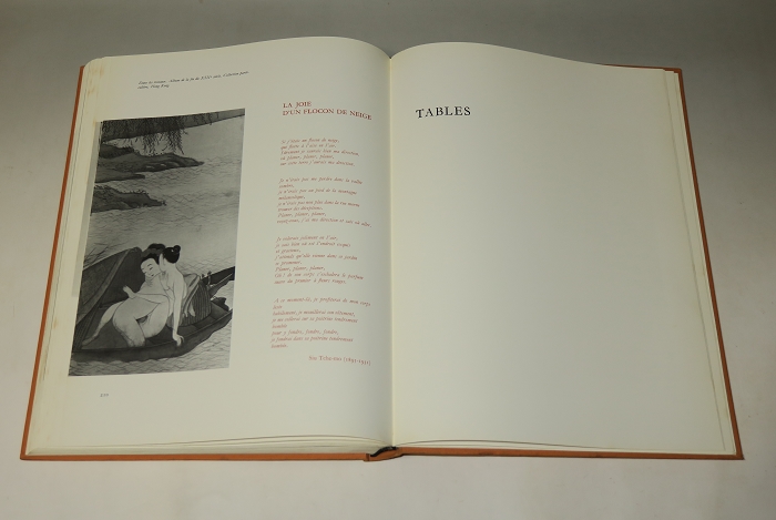 4开大本(36.5×27.5cm),223页,印刷精良的美丽情色书籍,包含103个黑白插图和28幅粘贴彩色版画。状态新鲜,书品清爽。和市面常见的71年本不同,此本无定价,是出版商留给编者的非卖品礼品书。此为编者之一张复蕊旧藏,品相只能用完美形容。