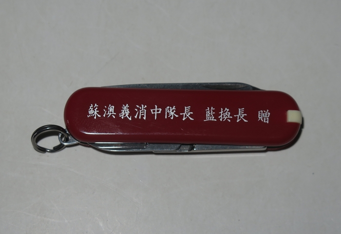 刀柄刻印:蘇澳義消中隊長藍換長贈