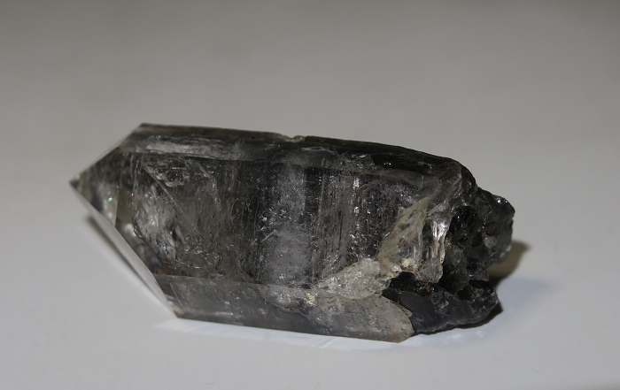水を操ることができる面白い水晶。クリスタルポイント(Crystal Point,角柱)の形で内包物がはっきりみえる。側面近くに水と気泡が入っているので見やすいのが良いところ。内部に泡が大量あり、確認した気泡は30個以上。他にもあるかもしれないのでぜひ探してみてください。