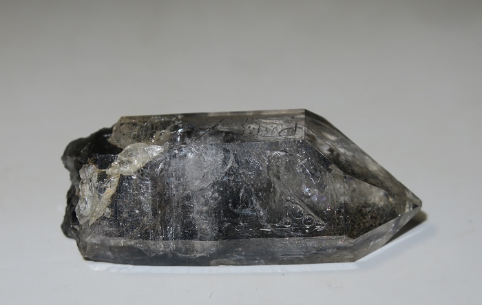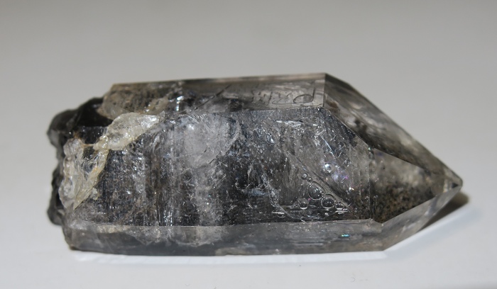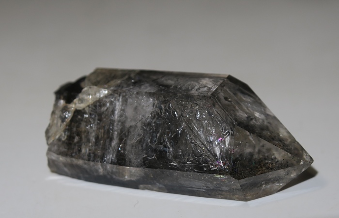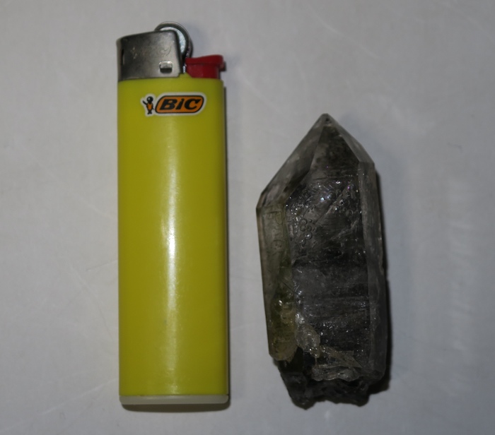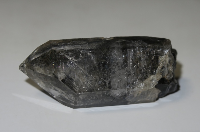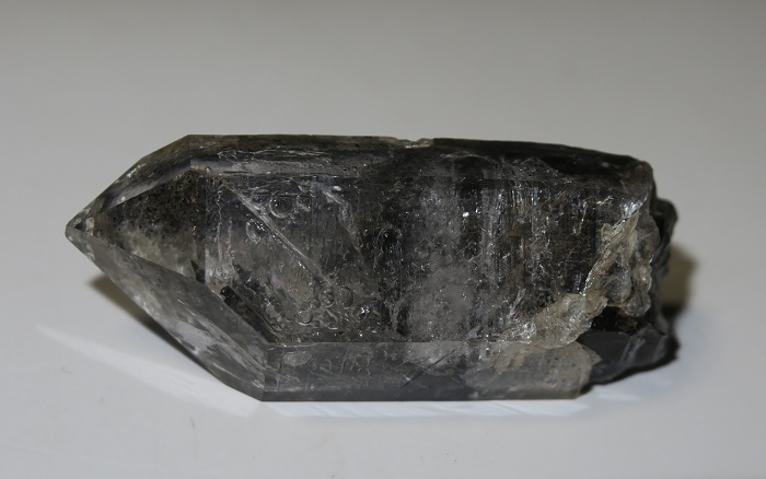 水を操ることができる面白い水晶。クリスタルポイント(Crystal Point,角柱)の形で内包物がはっきりみえる。側面近くに水と気泡が入っているので見やすいのが良いところ。内部に泡が大量あり、確認した気泡は30個以上。他にもあるかもしれないのでぜひ探してみてください。