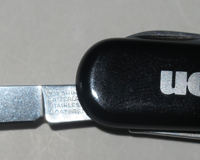 ビクトリノックス・クラシックのアーミーナイフ、アメリカ合衆国の軍需製品メーカー、レイセオン(Raytheon)によって特別注文したクラシックリングが無いモデル、市場に出ない珍しい逸品。